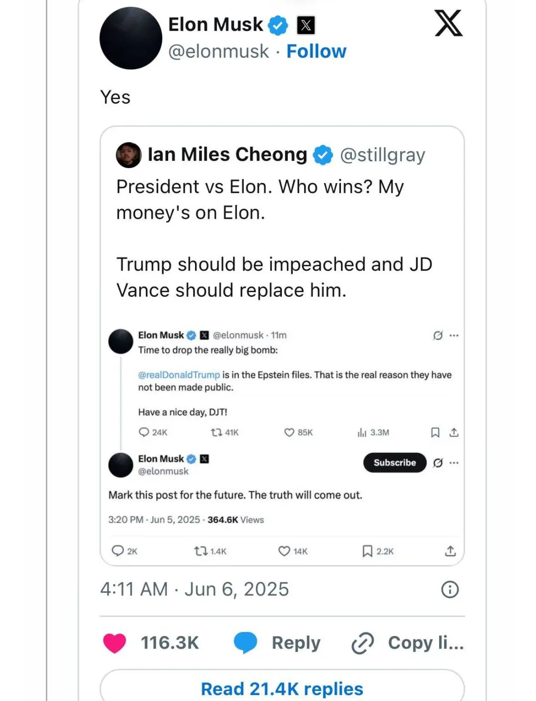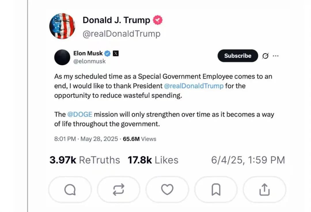 其實在馬斯克逐漸淡出特朗普政府後,我就猜到他們倆會有這樣一場大撕逼,只是沒想到來得如此快,如此猛烈。