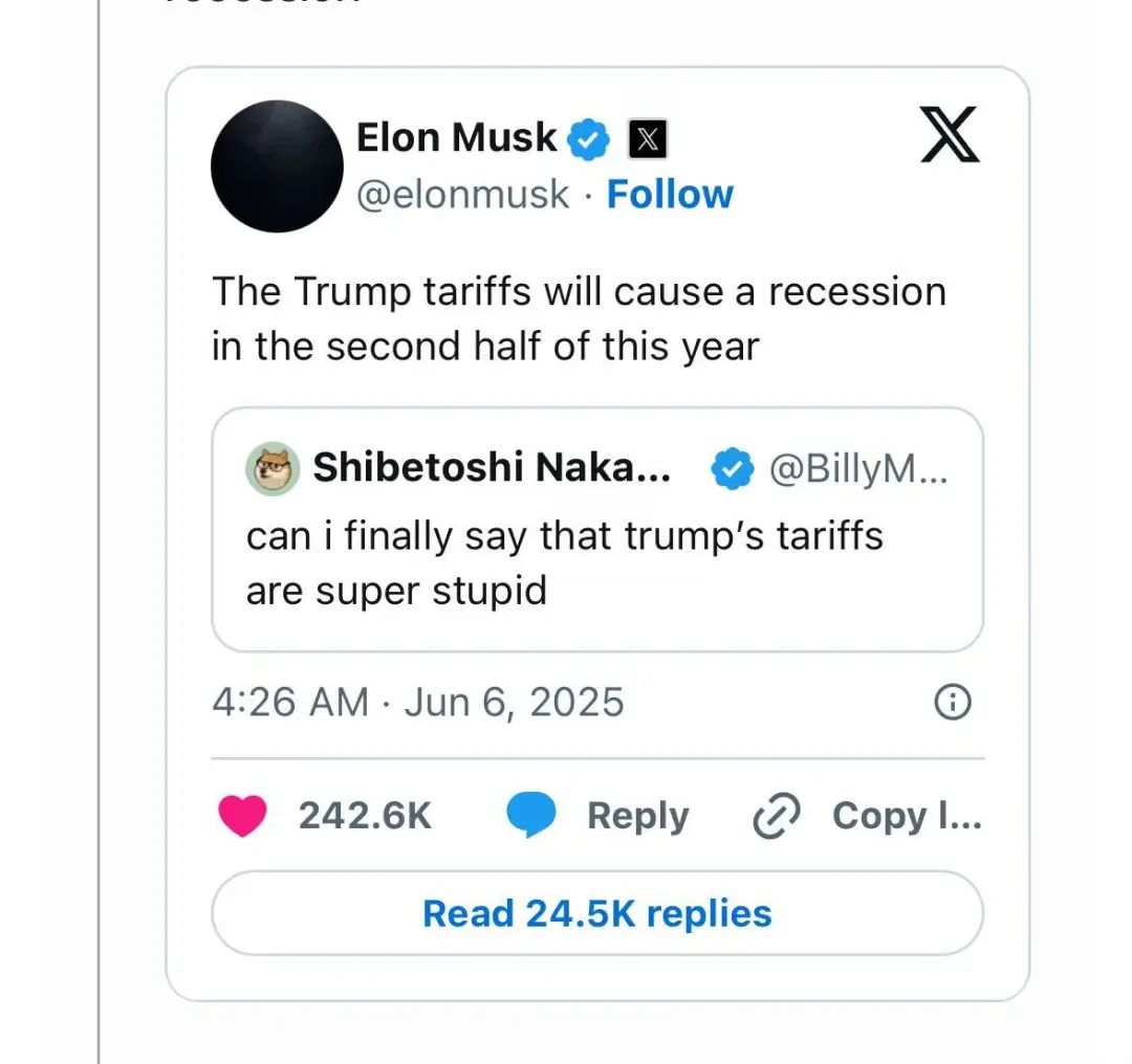 而特朗普同時和全世界打貿易戰,馬斯克又是特朗普政府的要員,於是全世界都把矛頭指向了特斯拉。