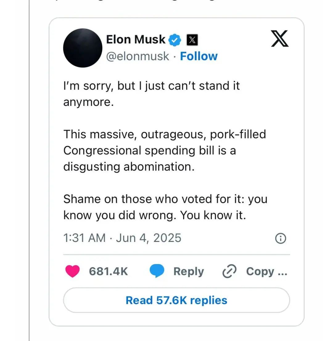 所以馬斯克直言不諱,批評該法案“讓美國破產是不對的!”