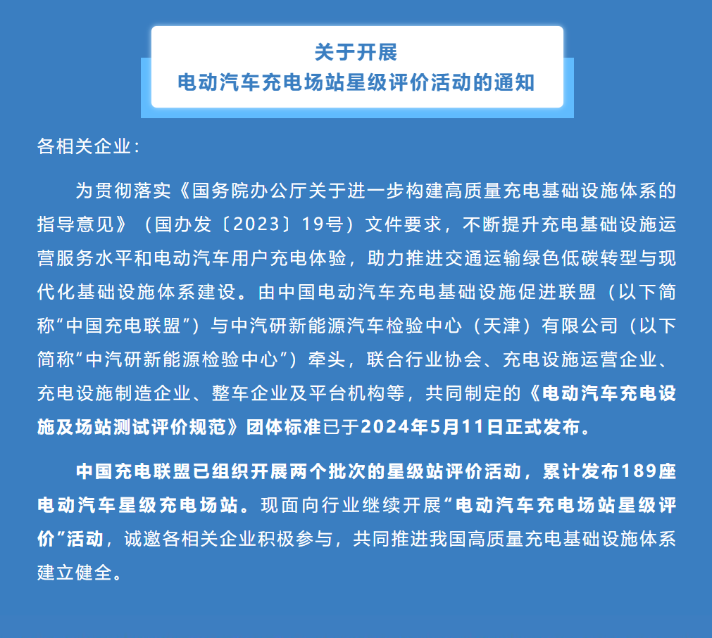 最近,中國充電聯盟就搞了件好事,它發佈了《關於開展電動汽車充電場站星級評價活動的通知》,也就是説,充電樁也要和酒店一樣有星級的説法了。