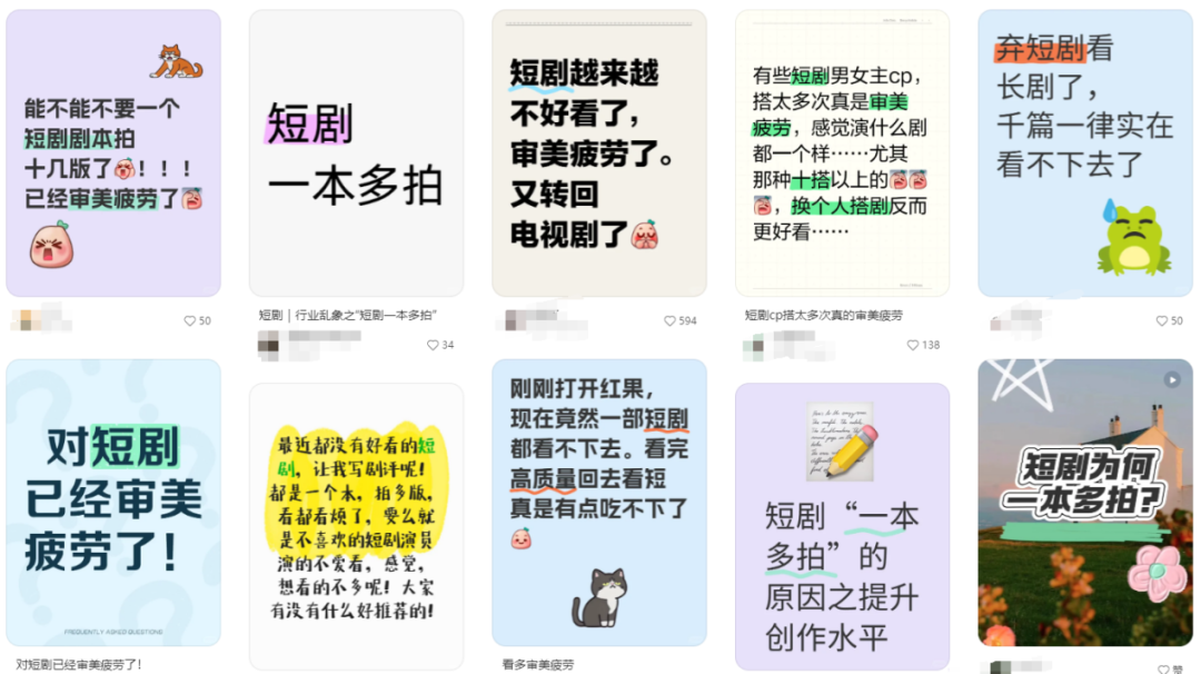 然而,部分短劇受眾也表達着對“一本多拍”的不滿,他們認為這種在大套路的基礎上疊加小創新的做法,更像是對原創意的過度消費。
