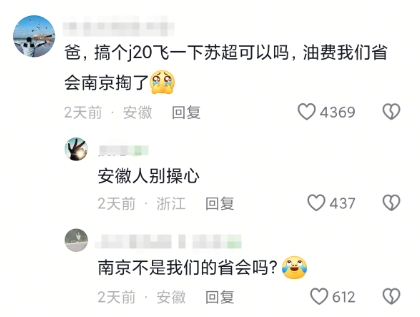 而在最近幾天,這場全民狂歡的體育盛宴又帶來了一個意想不到的結果:也不知道是哪個小天才突發奇想,跑到了東部戰區的官方媒體賬號下方留言:能不能和美國的“超級碗”一樣,派兩架戰鬥機來我們“蘇超聯賽”的比賽現場飛上一圈啊!