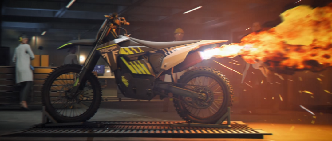 高科技交通工具當然少不了,除了阿斯頓馬丁還有屁股冒火的特技摩托。