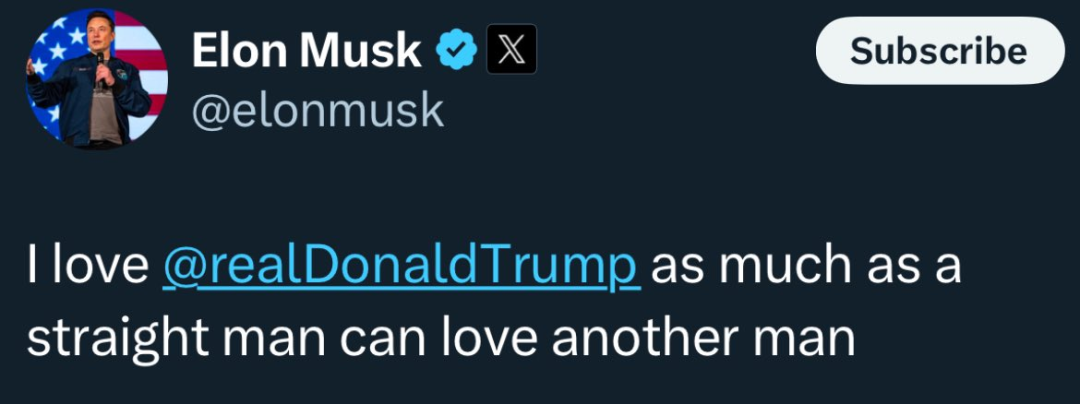 3個月前,馬斯克還在那搞肉麻,説自己愛特朗普,已經愛到了身為直男的極限。