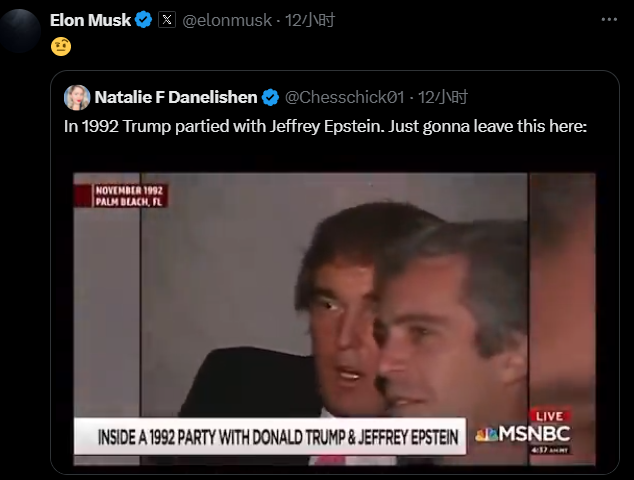 現在馬斯克跳出來,直接告訴美國人,黑手就是特朗普,網上直接炸了。不僅如此,馬斯克還發了一堆特朗普跟愛潑斯坦一起出鏡的老報道、老視頻,暗示兩人交往很深,穿一條褲子。