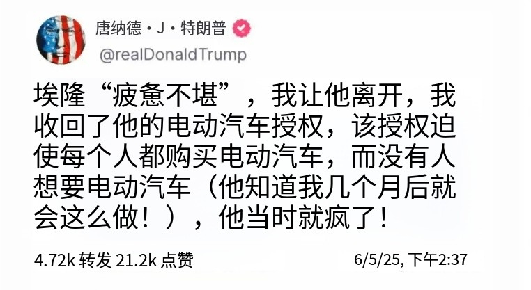 特朗普在採訪時就指出,馬斯克是發現新法案要砍掉電動車強制令之後,才繃不住了,這個法規源於拜登時代,要求汽車製造商在一定年限內逐步淘汰燃油汽車的生產,同時增加電車的產量和銷量,而特斯拉又是全美最大的電動車廠商,顯然能從法案中受益。所以特朗普的意思很明顯,馬斯克是覺得自身利益受損,才煽動大家抵制法案。