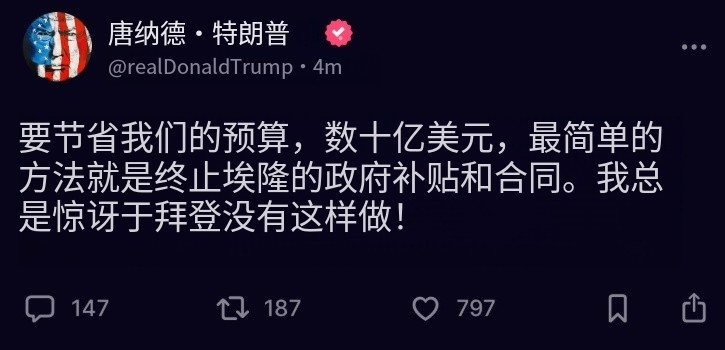 這麼看下來,投資特朗普,應該是馬斯克一生中最失敗的投資了。