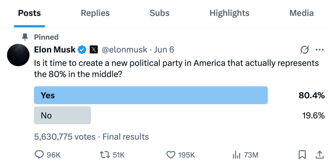 這部特朗普反覆誇讚的“大而美”法案,包含取消電動車税收抵免、削減清潔能源補貼等條款,直接觸怒了馬斯克。他現實公開和特朗普唱反調,稱法案令人作嘔。而之後他在X平台連發三條動態:“國會正在用這個法案毀滅美國經濟"“看看特朗普2012年反對赤字的舊帖,多麼諷刺"“需要新政黨代表80%的沉默大眾”——三小時內收穫2400萬點贊,特斯拉股價應聲暴跌。
