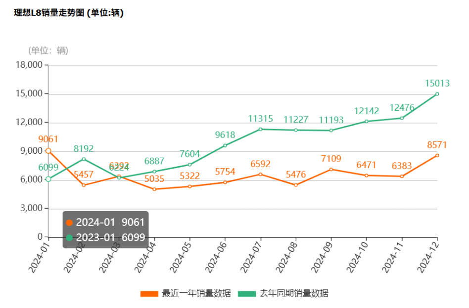 消費者有了更多選擇,再加上純電汽車的續航里程和快充能力也在不斷升級,理想的獨特性正不斷被削弱。去年,除了理想L6因價格下探而實現了銷量爆發之外,L8、L9的銷量均同比下滑20%-30%的比例。