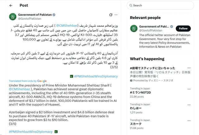 有不少網友表示,巴基斯坦如果要購買這麼多裝備,錢從哪裏來了。其實這次發佈消息時,就列舉了謝里夫的一系列成就,其中就提到資金問題: