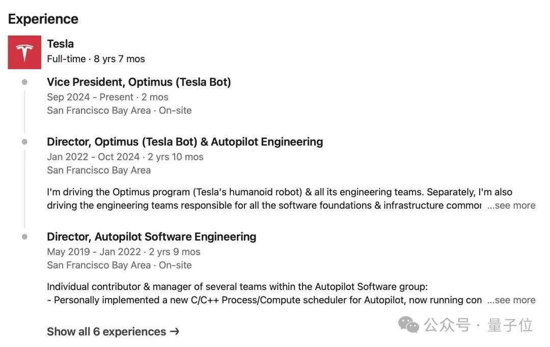同時他在去年9月剛剛被任命為Optimus副總裁,期間推動類人機器人靈巧手逼近人類手部自由度,並將尖端強化學習進一步應用到運動以提升Optimus自主性。