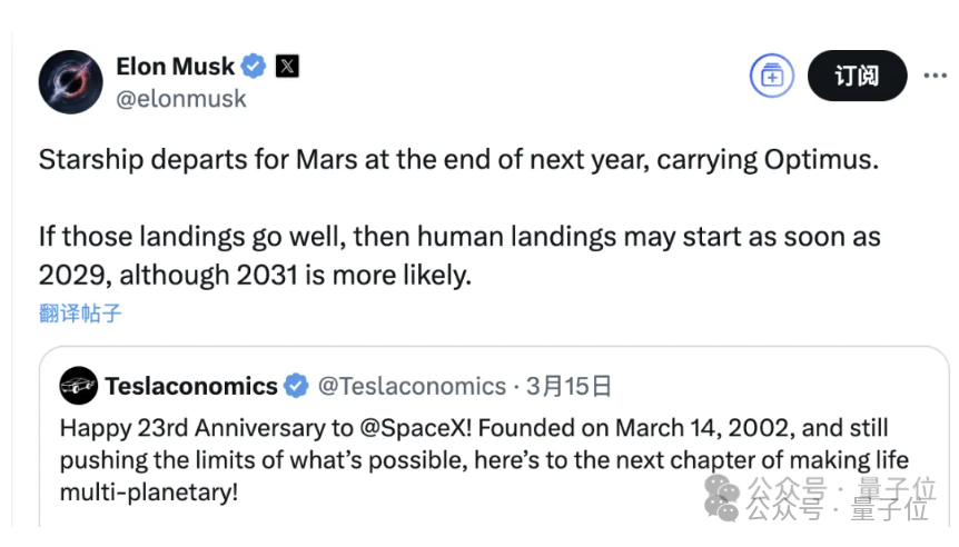 馬斯克甚至還放言:明年要帶着擎天柱去火星。如果着陸順利成功,可能在2029年或2031年開始向火星運送真人。