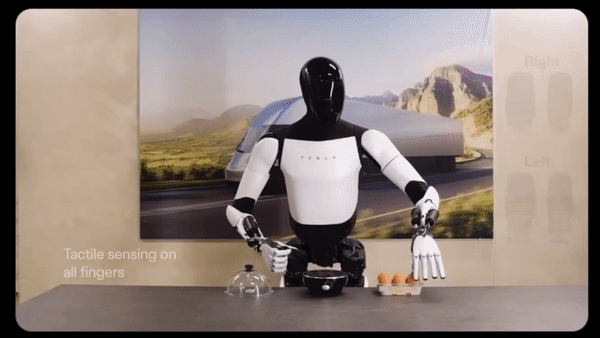 緊接着,特斯拉在12月又扔下一枚深水炸彈,第二代Optimus以驚人的完成度亮相,流暢的行走姿態、精準的深蹲動作,甚至能輕柔抓握雞蛋的靈巧手指——這些畫面瞬間點燃了整個具身智能行業的想象力。
