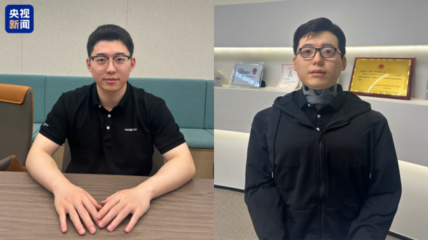 ● 松延動力聯合創始人“胡博士”和仿生機器人Hobbs。圖片來源:央視新聞