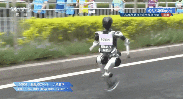 ● 松延動力N2機器人在北京亦莊馬拉松。圖片來源:央視網