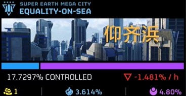 抵抗度低於進攻度時,該城市的控制度(上圖中17.7297%)就會持續減少,減少到0%時該城市淪陷。抵抗度取決於目前該地圖中的玩家佔比,進攻度則是遊戲官方自行調節。