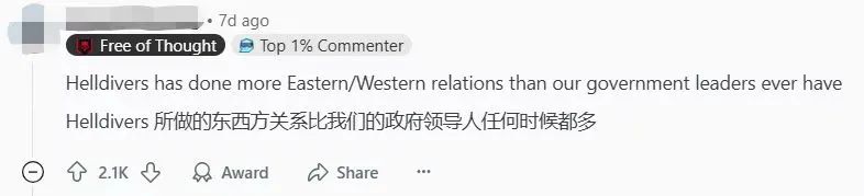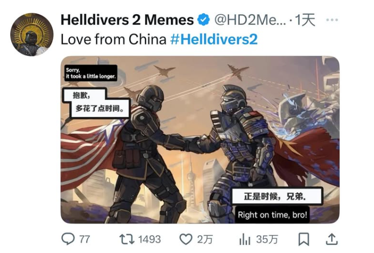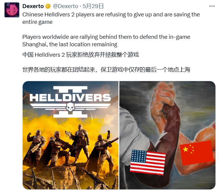 最後來點輕鬆的結尾,“上海保衞戰”期間,中國玩家為了給美國盟友穩定士氣,開始玩屈原的梗,説屈原是中國歷史上真正的“地獄潛兵(HellDiver)”。