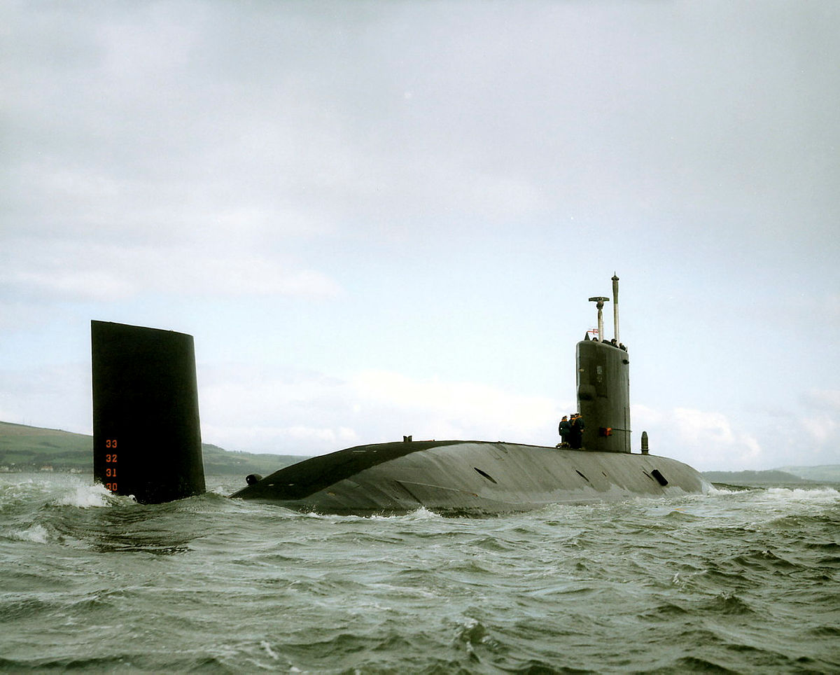 1991年4月,“迅捷號”潛艇在克萊德河上。版權歸英國王室所有