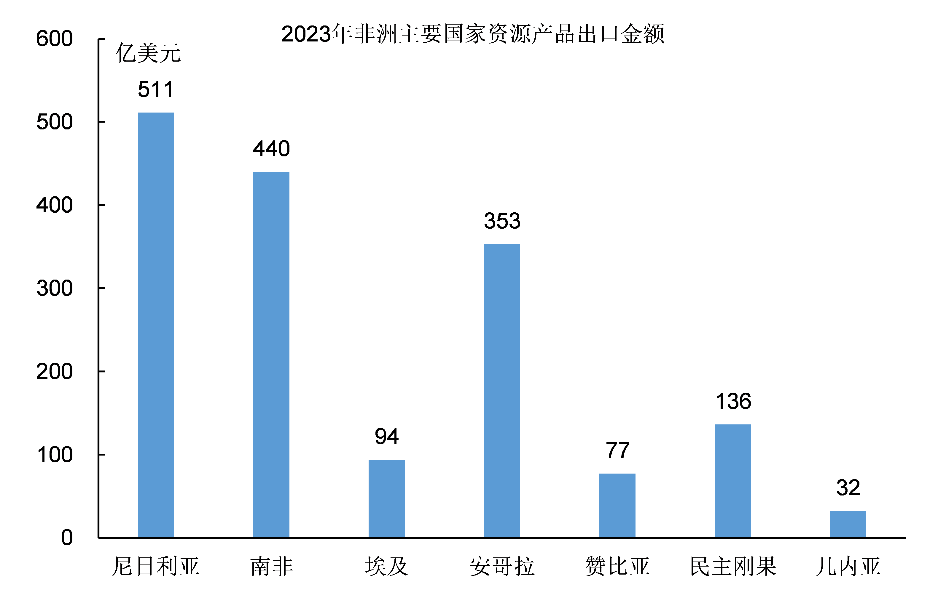 2023年尼日利亞的資源品出口金額只有511億美元,南非只有440億美元,安哥拉只有353億美元。