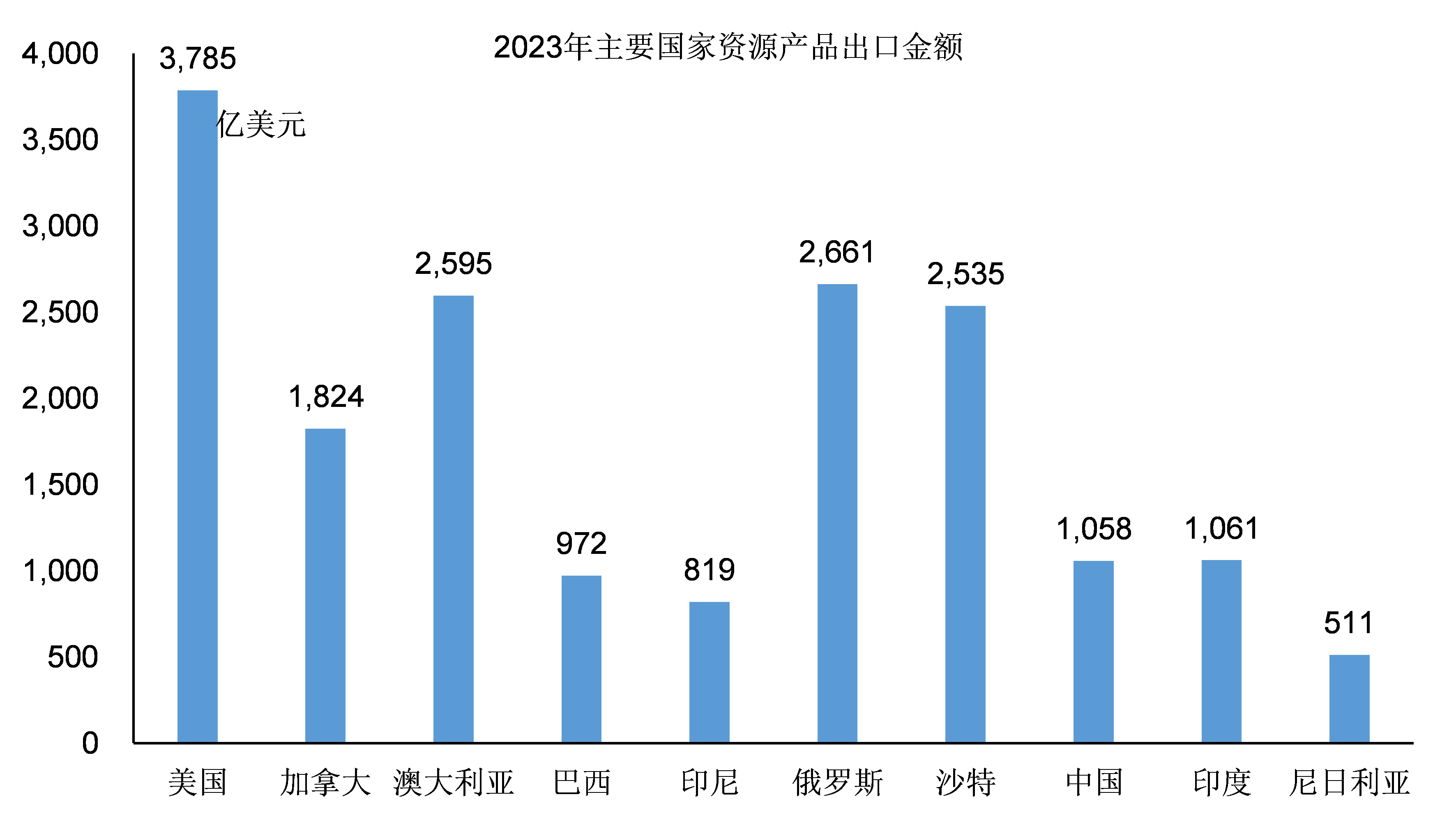 但即使是資源最豐富的美國,2023年資源產品的出口金額也只有3785億美元,在美國商品出口總額中的佔比只有18.8%。