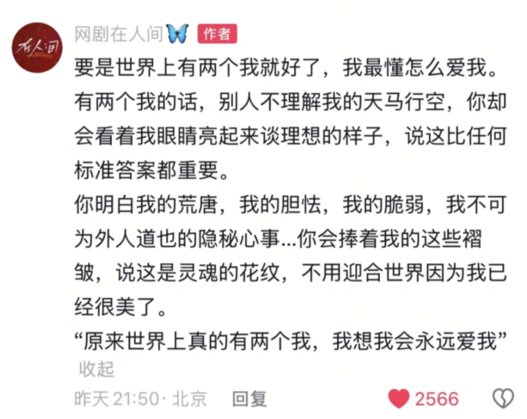 不再追求與他人建立真實的關係,卻轉而一種消極卻温柔的自救:我不必直面那些痛苦,因為我還有“自己”,這樣我就還是一個值得被愛也依然保有愛人能力的我。