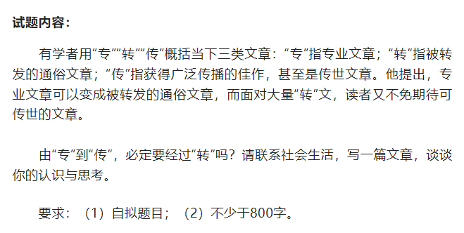 從“專”到“傳”,“轉”是必經之路嗎?(長按標題劃線評論,給作文3打分,滿分100)