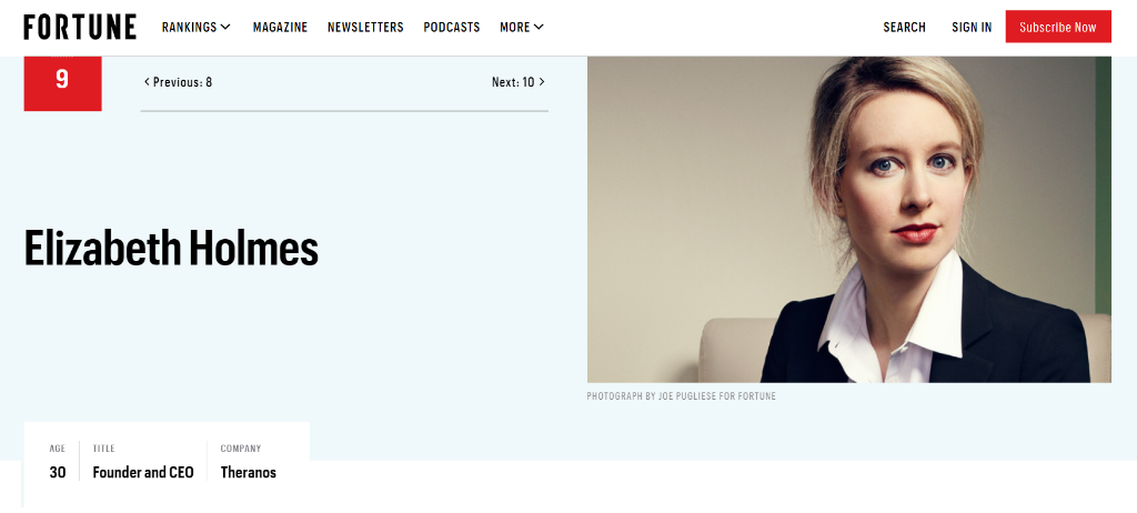 創始人Holmes還藉此登上了《財富》雜誌“40 under 40”商業人物榜單,一時間風光無兩。