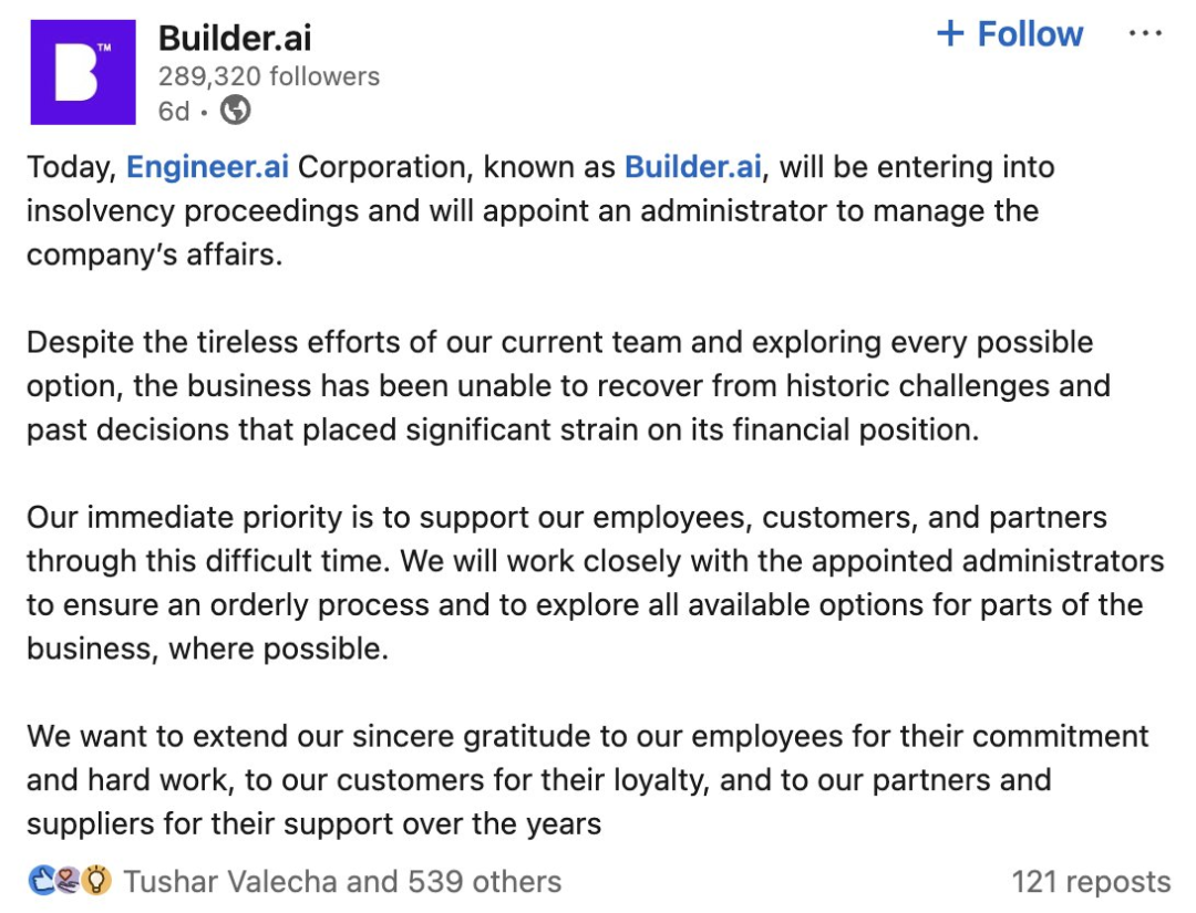 從這時起,Builder.ai的爛攤子開始一發不可收拾。