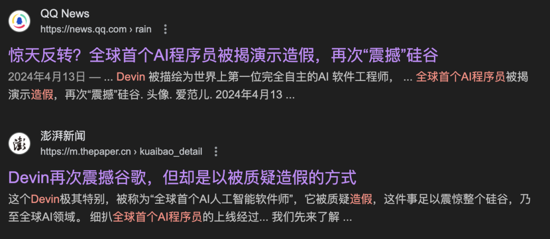還有去年讓業內側目的“全球首個AI程序員”Devin,號稱不僅能按照需求完成代碼任務,能幫人類程序員解決BUG。但短短一個月後,就被一位資深程序員Youtube 博主針對Demo逐幀打假。