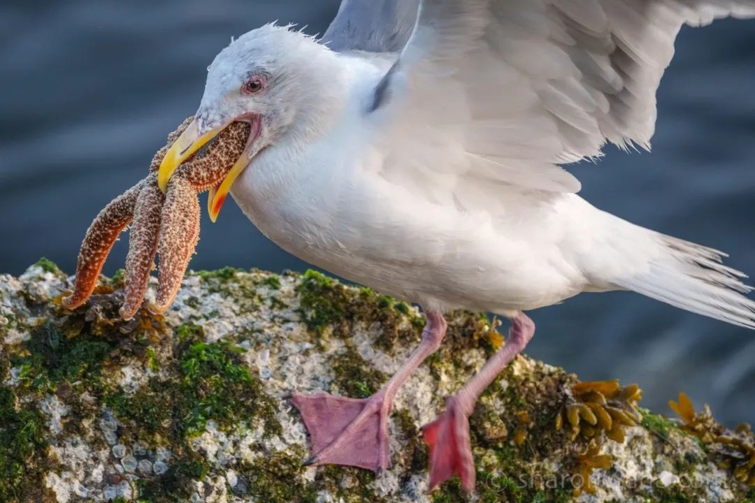 生態學家達辛·霍琳達(Dacyn Holinda)表示,像海鷗這樣的機會主義者,不會放過到嘴邊的任何食物。雖然像海星這樣的棘皮動物有着粗糙、硬質的外殼,但海鷗還是沒有放過享用這頓獨特美餐的機會。