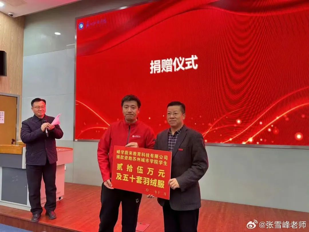 拋卻各種爭議,張雪峯的公益行為是實打實為很多貧困家庭的孩子帶去幫助。他還鼓勵員工參與到對家鄉的慈善幫扶中,鼓勵優秀員工向母校捐款,公司和員工各承擔一部分金額。