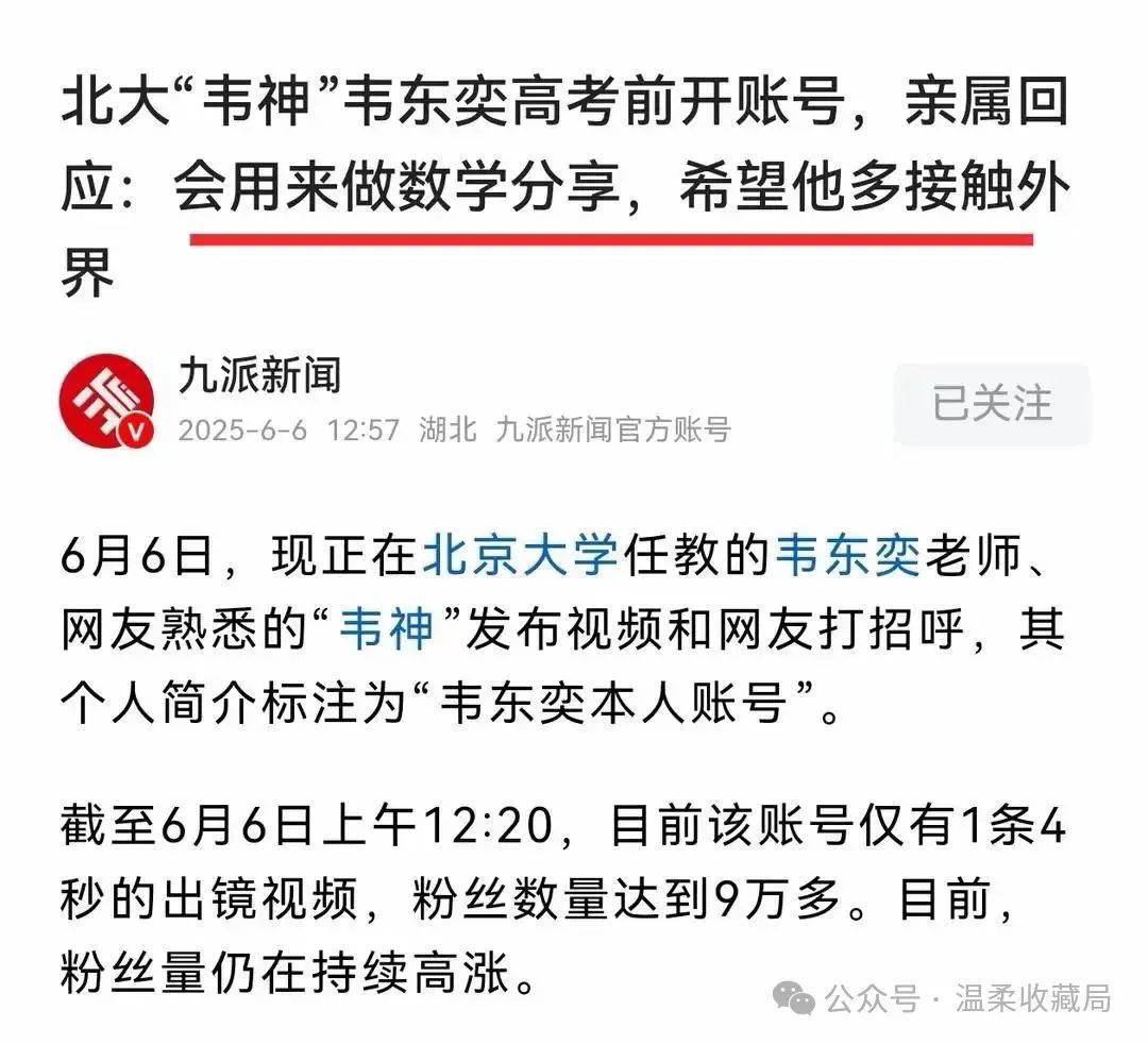 4秒視頻漲粉1000萬!北大向韋神家屬提出交涉,雙方壓力都很大_風聞
