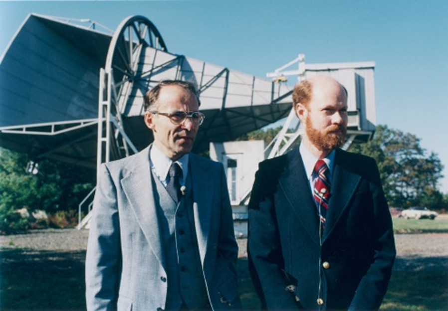 彭齊亞斯(右)與 威爾遜站在他們的天線旁