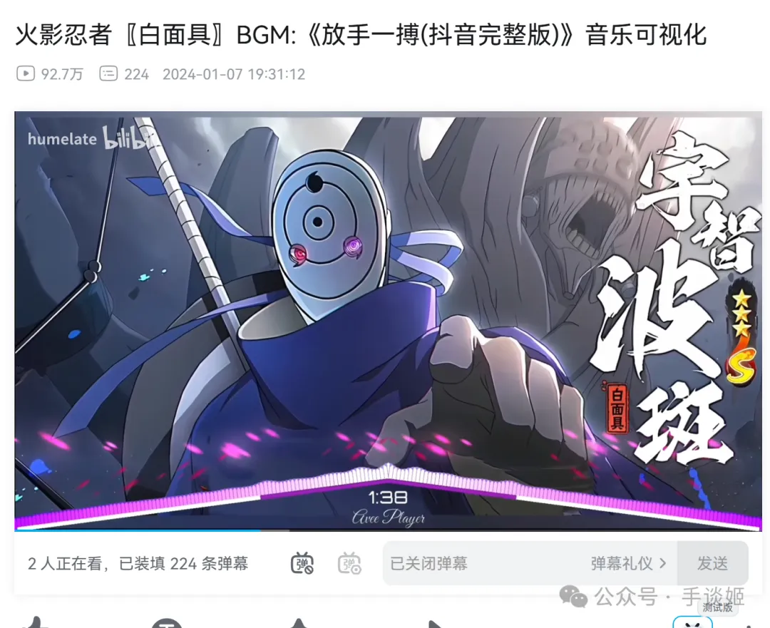 騰訊旗下的《火影忍者》手遊相當成功,雖然經常被玩家們吐槽騰子不做人,但不得不説它擁有極其龐大的玩家羣體。當然也誕生了不少梗,有時候土味DJ配上《火影》手遊裏面的角色做一個可視化DJ的視頻,就能收穫不少點擊量,連姬這個對格鬥遊戲興趣有限接觸不多的人都能偶爾刷到。