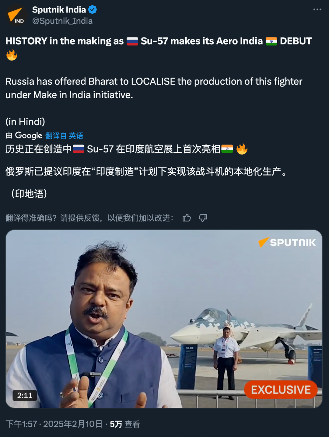 而這個時候,突然俄國防進出口公司找上門來,跟印度説我們不僅可以給你提供產品,還可以跟你開放產品的所有航電系統源代碼,你想整合什麼印度的航空武器都行,不僅可以給你整合你想整合的所有武器,我甚至連生產線都可以轉讓給你,幫助你提高印度自己製造第五代戰鬥機的水平。這條件,對比印度能拿到的任何條件都要優越的多,有產品,開放源代碼,轉讓生產線,快速形成戰鬥力,而且,相比美國出口F-35A的時候必然要附加一堆條件,俄羅斯的航空武器轉讓大概率沒有那麼多嘰嘰歪歪的條件,更符合印度這有聲有色、維持較強戰略自主權的大國人設。