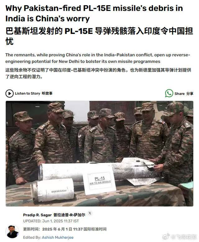 大家或許對PL-17(400 公里+ BVR)空空導彈能力不太清楚,那我們還是瞭解下被印度撿到的這枚PL-15E型遠程空空導彈,棉花絮估計因為被其他PL-15E型遠程空空導彈搶了風頭,導致這枚導彈沒有目標發生了自毀,才被印度撿到。