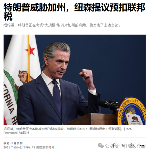 而紐森的反擊策略也是直擊要害,考慮截留每年本應上繳聯邦的數百億美元税款。