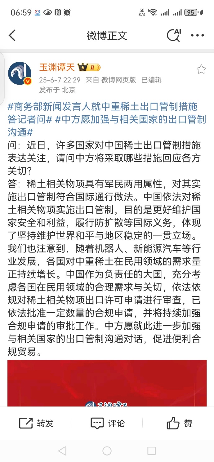 通過對稀土的管理和控制,影響世界高科技產業,影響世界先進武器的生產,這將是有效的手段。那些給台灣供武器的美國企業,都會面對稀土的封鎖,這是不可動搖的。這才是最終的管制能力,這才是真正強大的武器。在這樣的資源面前,什麼科學原理算個屁。