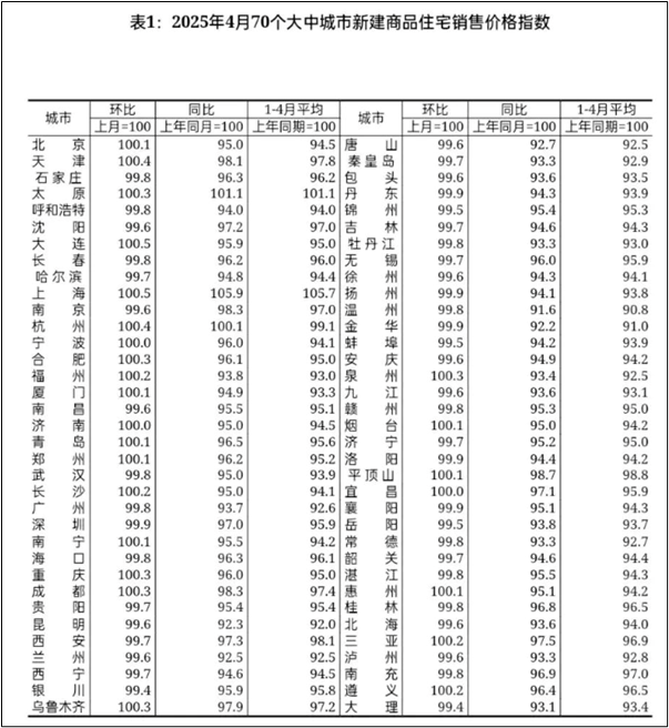 國家統計局4月數據顯示,多個大中城市走出了“小陽春”行情