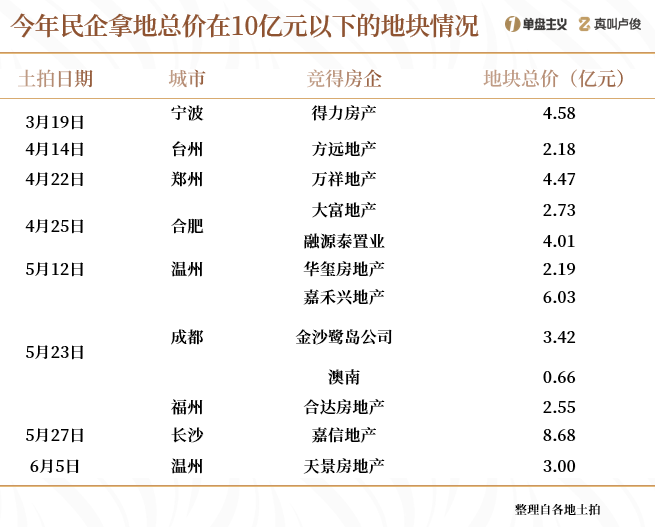 最為典型的就是5月成都土拍,3宗地塊總價剛過10億元,最終均由民企拿下