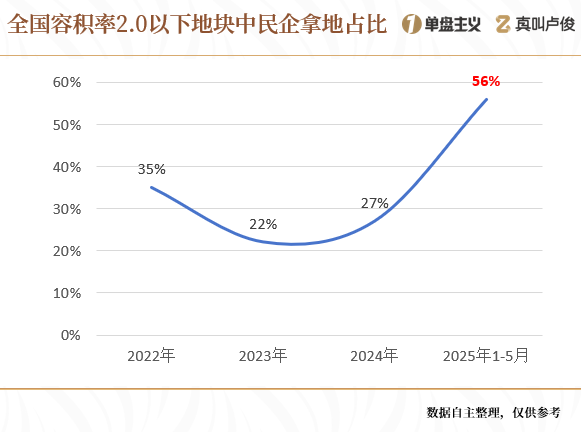 民企拿的地塊容積率和高度,也是一個比一個低,今年有超過一半的容積率都在2.0以下
