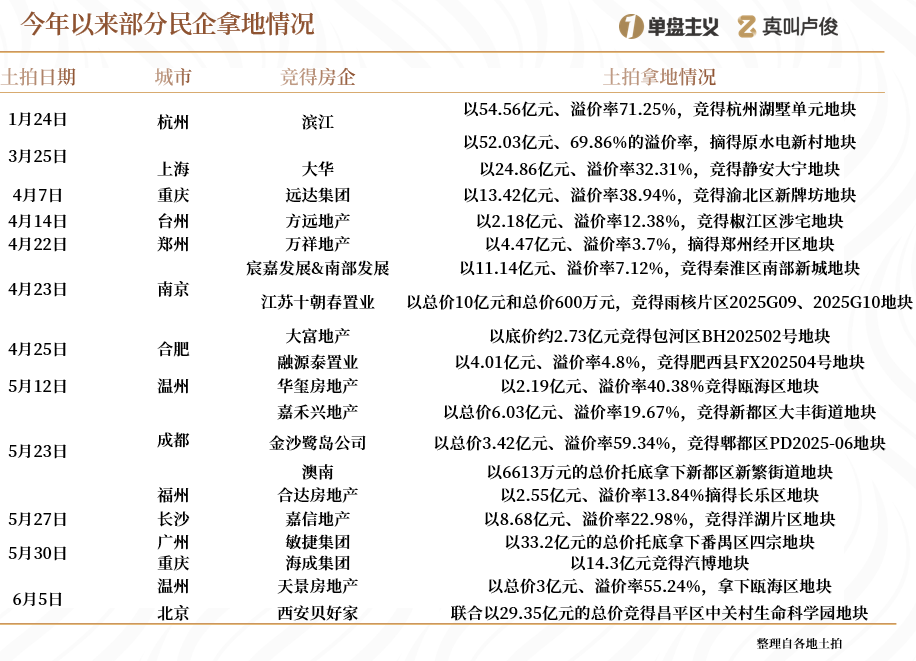 讓我們看看具體都是哪些民企,以及新拿的地塊都有哪些不一樣
