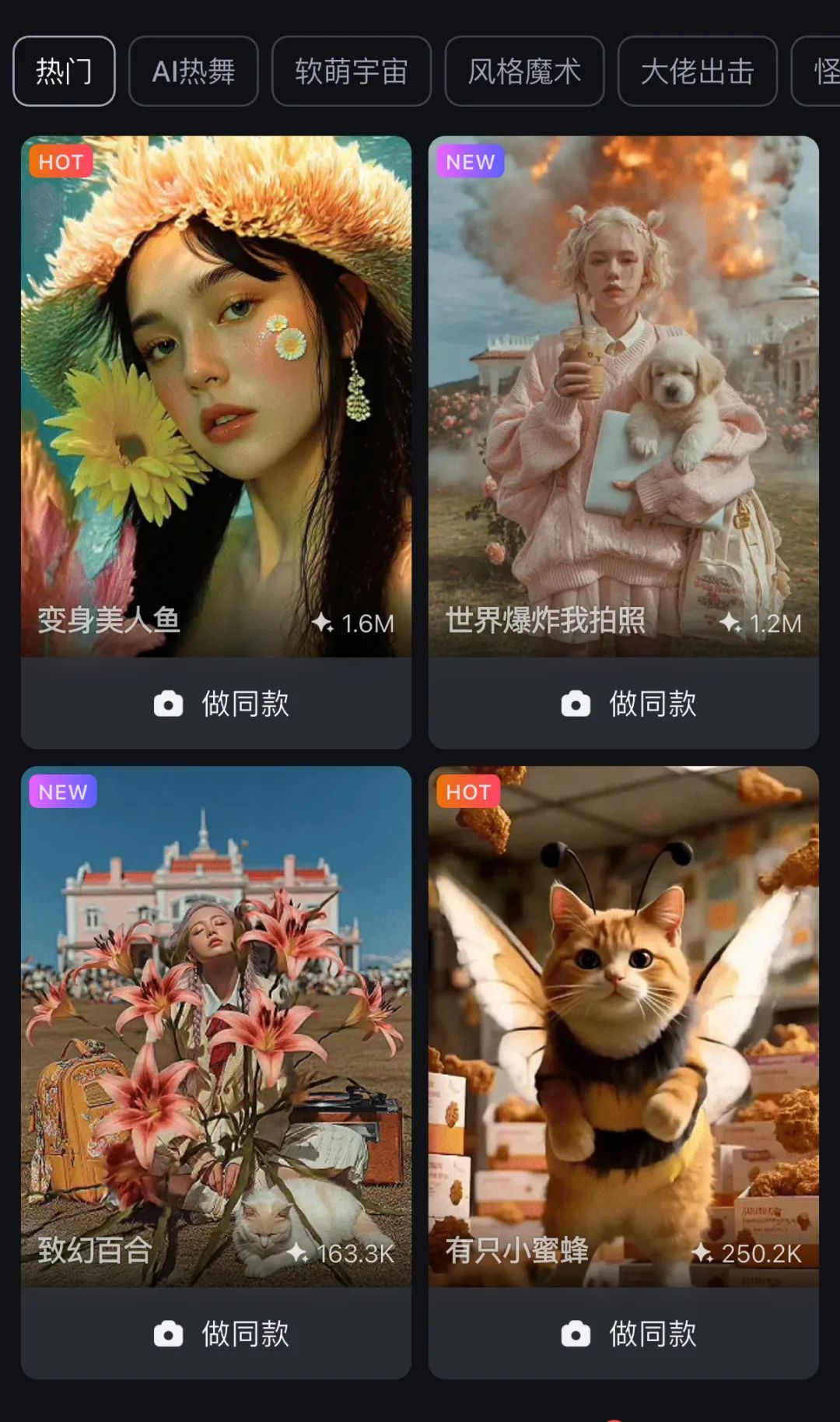 據公開數據顯示,PixVerse(拍我AI)如今全球用户數量已經突破6000萬,是全球用户量最大的國產AI視頻生成平台之一。拍我AI在國內上線後,其簡單、易操作的一鍵切換模板,也讓其創作者社區充分活躍了起來。