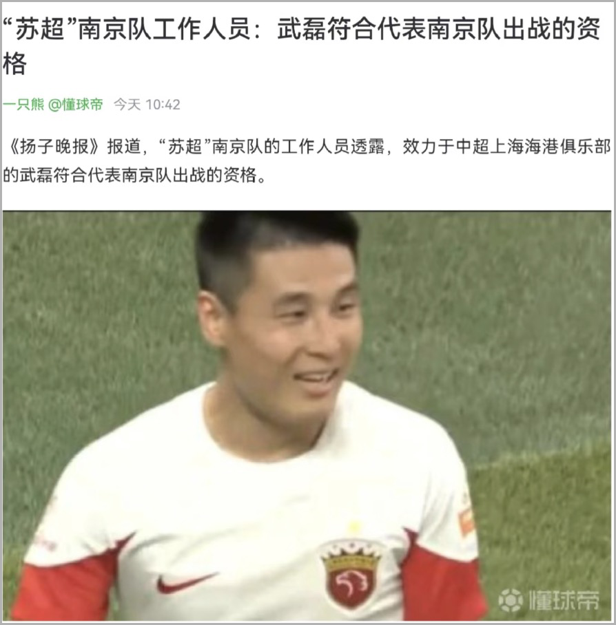 這還沒結束,南京隊估計覺得還不夠保險,居然對外放出消息,説武磊符合代表南京隊出戰的資格。就算最後武磊不參與蘇超,可嚇唬同行的效果還是達到了。