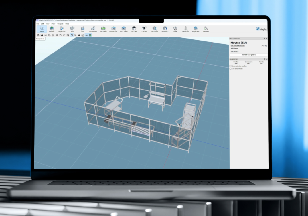 與此同時,通過SolidWorks、AutoCAD等三維設計軟件的鋁型材生成插件,又或是鋁型材專用設計軟件MayCAD,創作者不僅可以預先在電腦中建模、推敲節點關係並打造出設計圖紙,連帶具體的連接部件數量、種類也能一同計算並生成精細的物料清單。