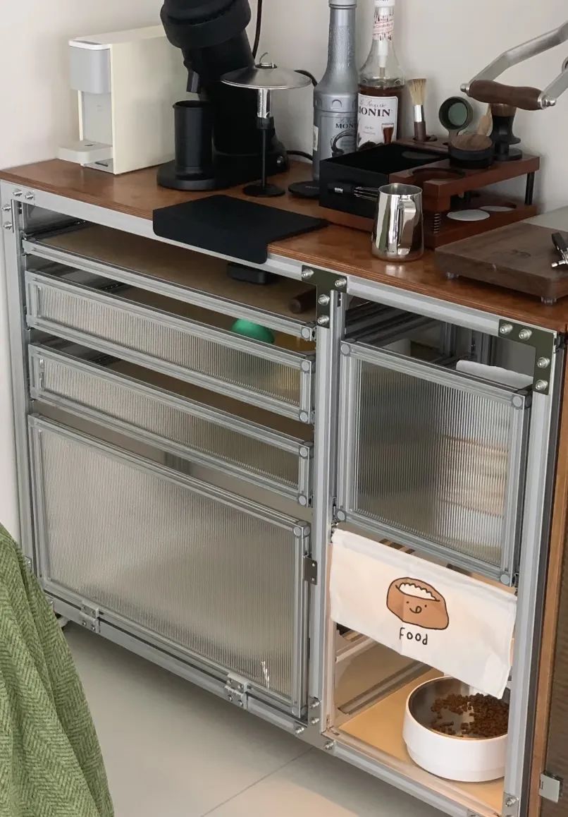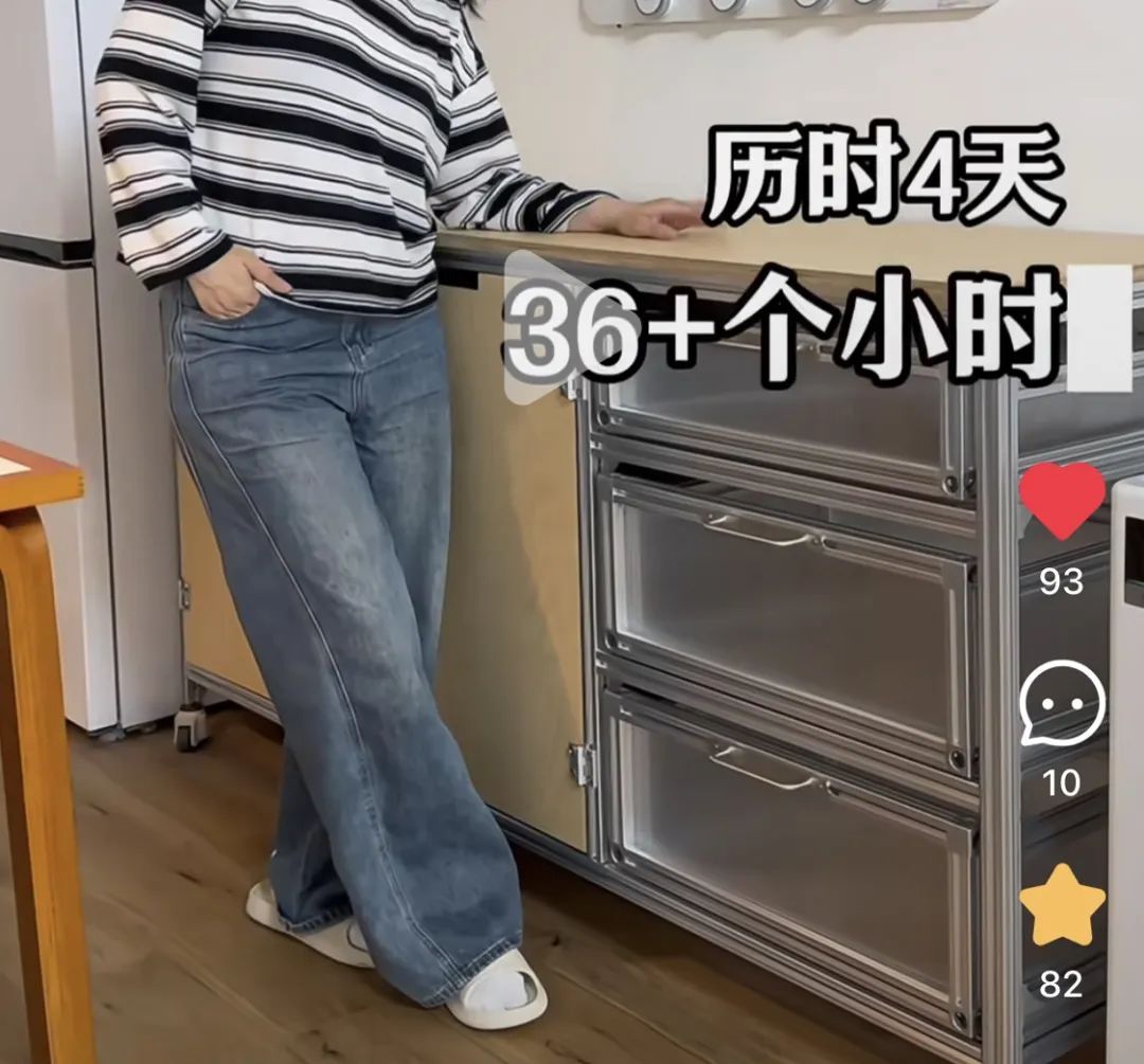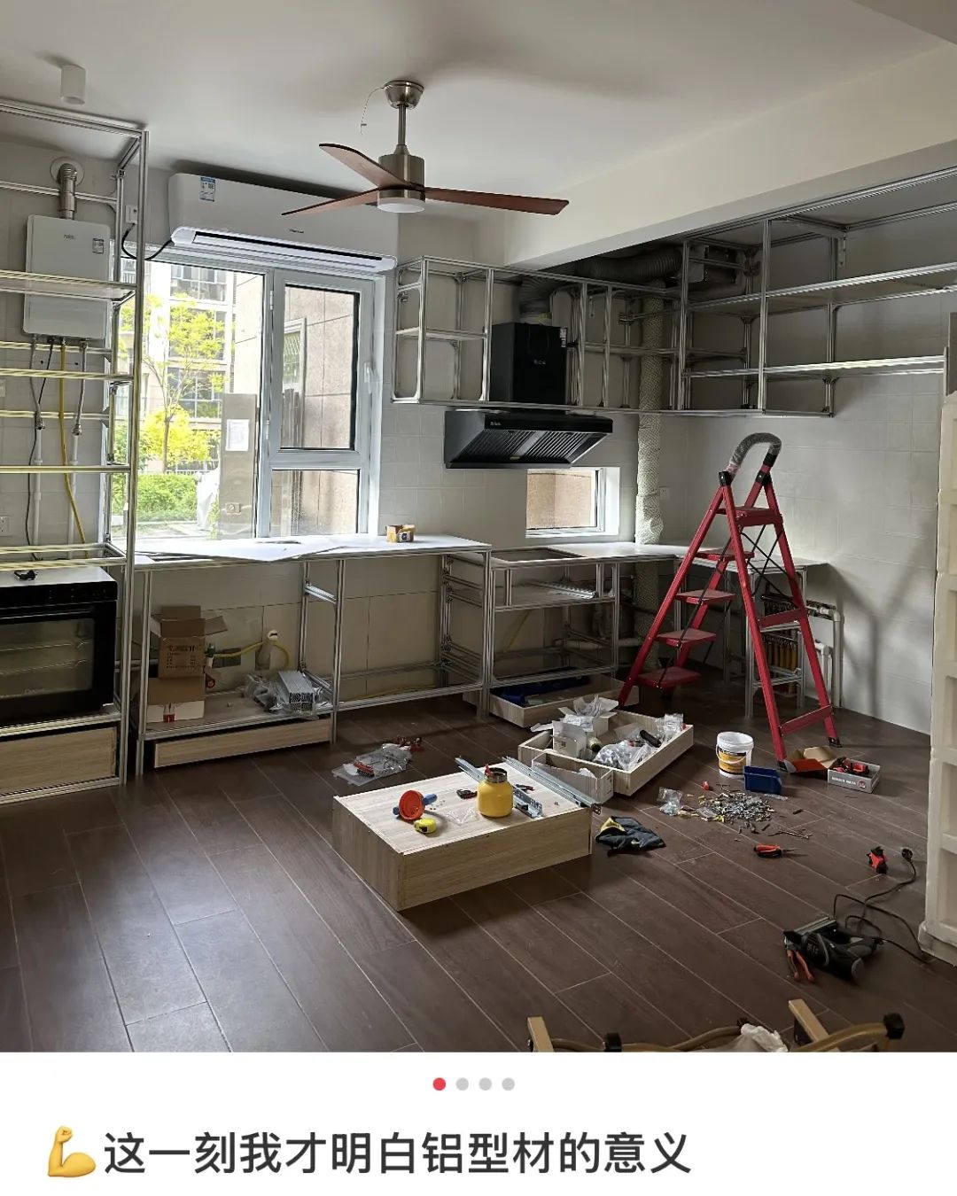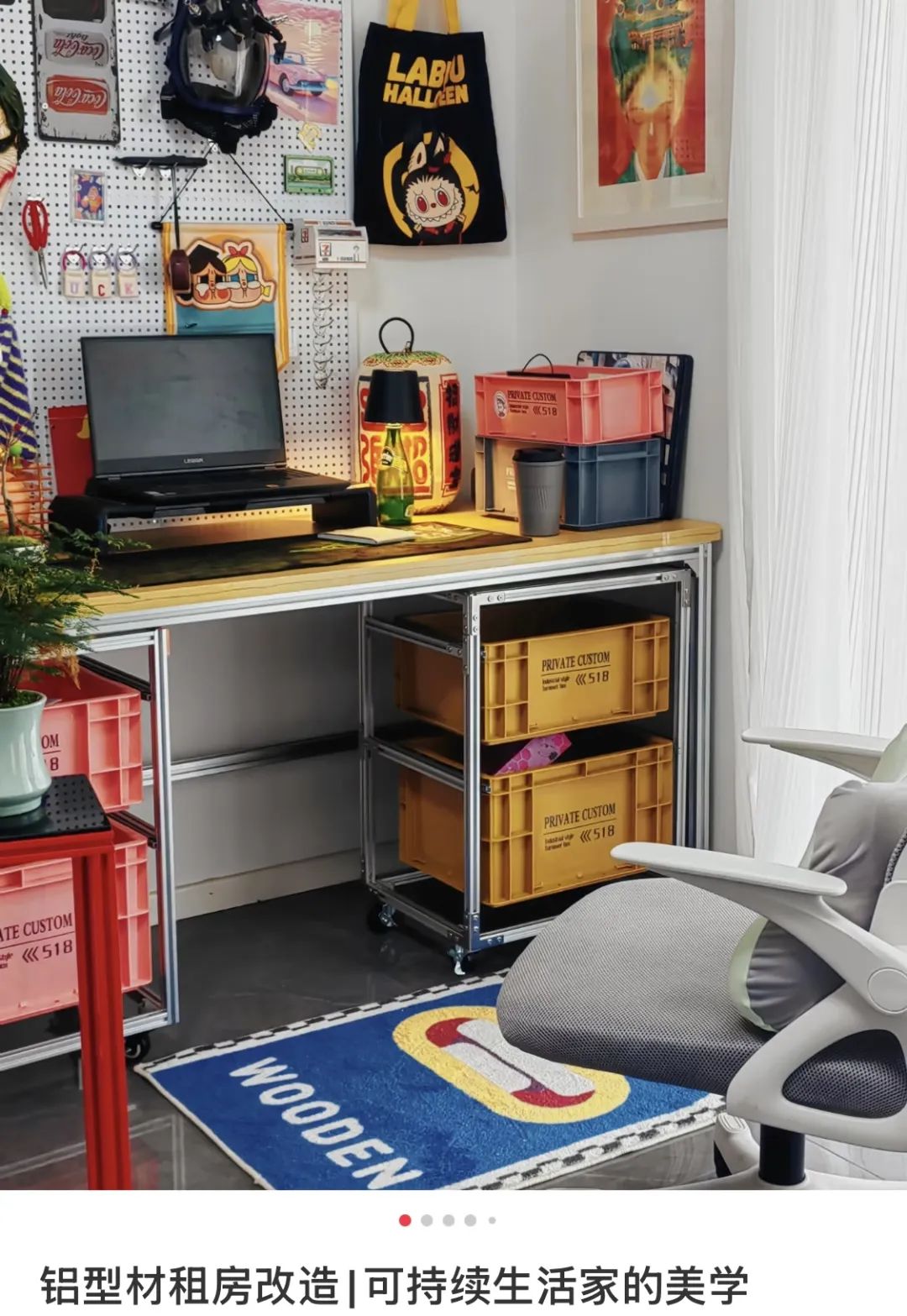 從簡單的多層置物架到可移動收納車,再到大型衣櫃、餐邊櫃,通過巧思組合,實現萬物皆可鋁型材,堪當年輕人新一代社交貨幣。
