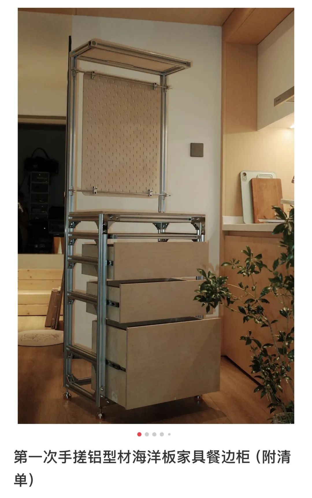 有博主在經歷繁瑣的籌備、與商家溝通連接件與鋁型材的攻絲細節、漫長的打螺絲體驗以後,最終艱難收穫了獨一無二的鋁型材海洋板餐邊櫃,隨即得出的結論是,下次還來。