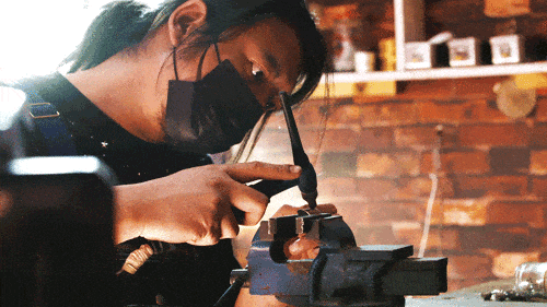 人們在手工耿的視頻裏逐幀觀看每個細節的打造,從電焊、切割、磨砂、拋光到上色,隔着屏幕,普通人把這些日常不需要接觸的技能變成了上好的電子榨菜,或許也曾幻想過自己也能心靈手巧地打造出專屬自己的原創刑具。