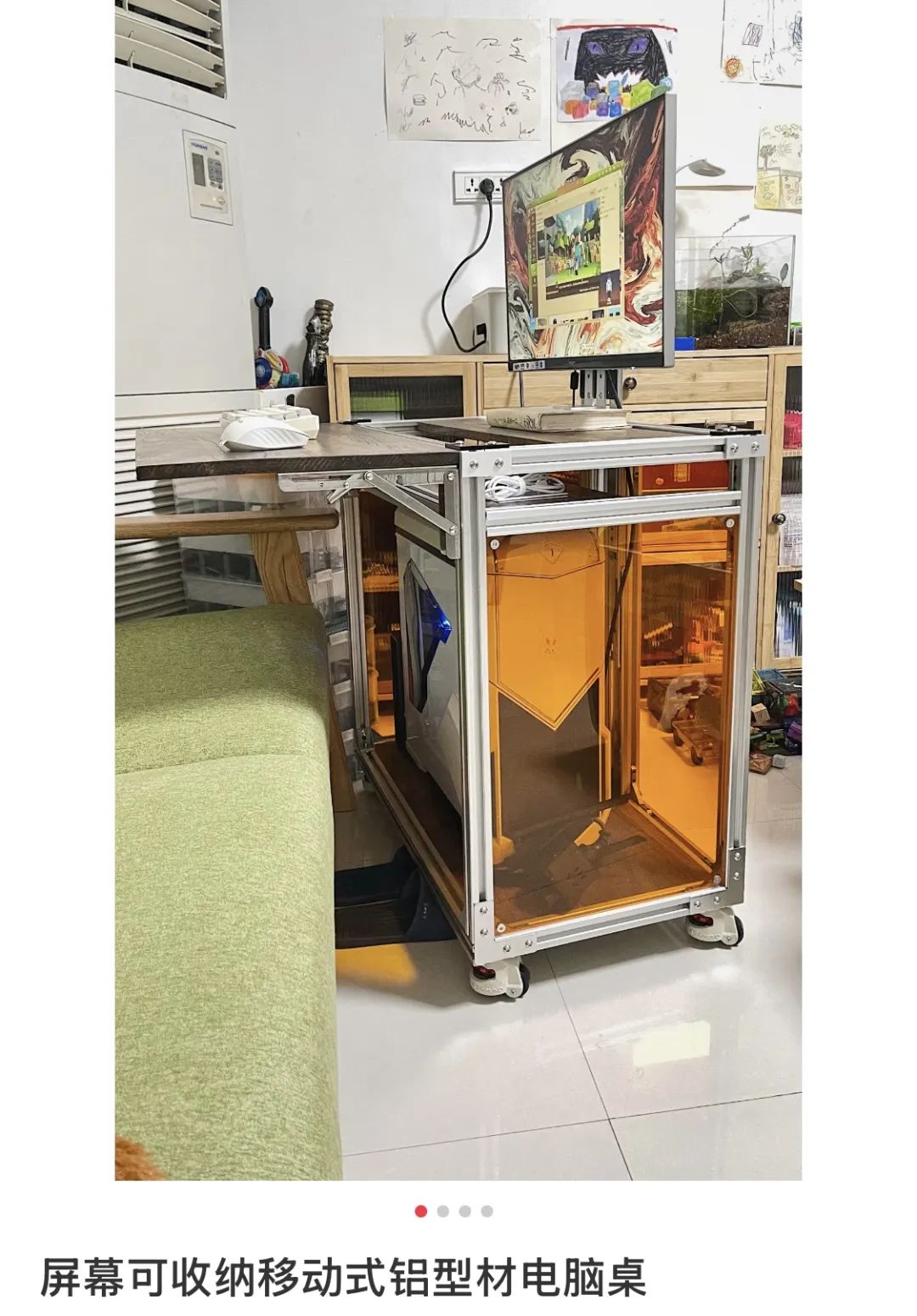 就像一切容易讓人上頭的玩意一樣,**標準件DIY其實也是一門易學難精的技術活,**置物架、衣櫃、書架、辦公桌這些實用且簡單的傢俱構成了如今標準件DIY的創作基本盤,在這之外則是手工達人們不斷地開發着自己的腦洞,並且用一件接一件驚豔的手工作品,向世人展示着鋁型材、光軸DIY的魅力。