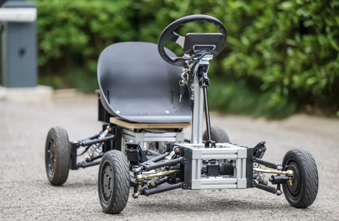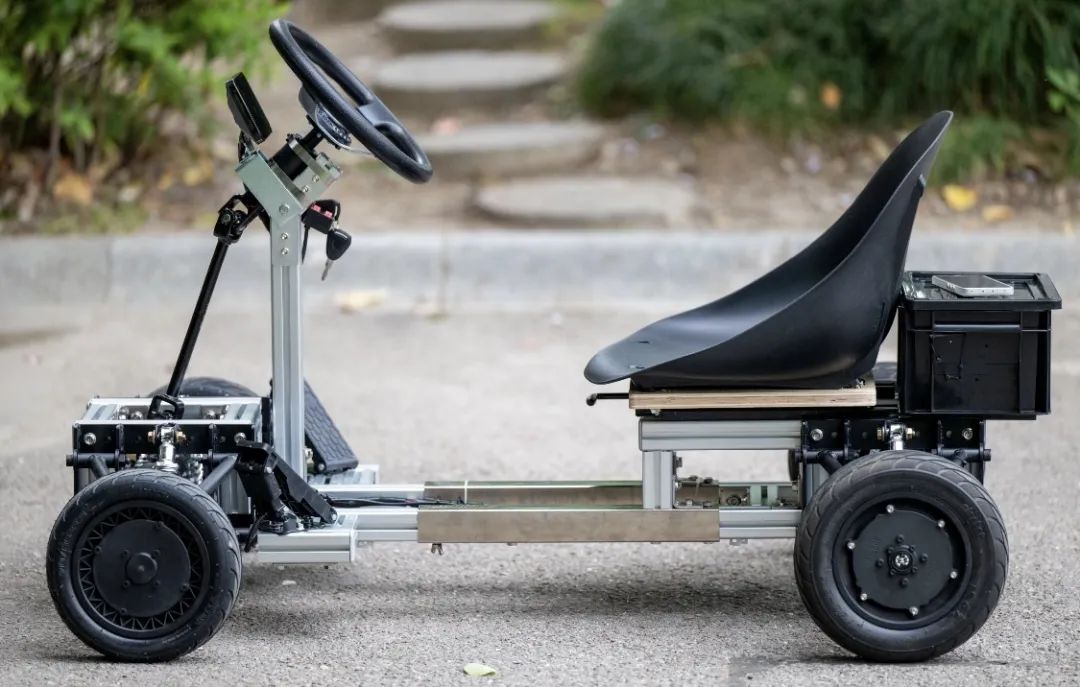 也有博主不拘泥於傢俱限制,利用鋁型材為框架打造了一款工業風賽博卡丁車,這背後涉及到材料強度、高功率電機、懸架系統、電控方案等內容,雖然複雜但可操作性極強。